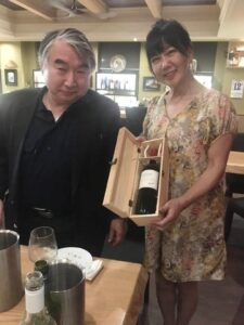 写真:堀江先生より高級ワインを彩さんに