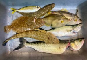 当方マゴチ2匹、アジ1匹。小鯛は数えきれず釣れましたがkeep sizeの30cm超は釣れず。