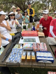 会員の皆様からご提供いただいた豪華賞品を手にしました。